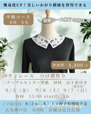 🪡 バテンレース ワークショップ コースは初級・中級の2コースを開催致します
