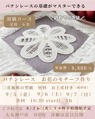 🪡 バテンレース ワークショップ コースは初級・中級の2コースを開催致します