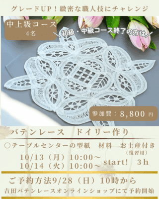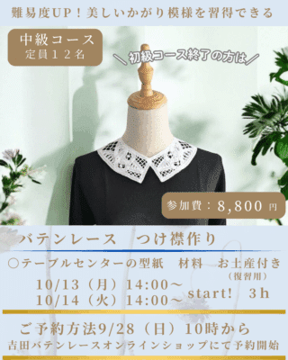 ・ワークショップは事前予約制 吉田バテンレース オンラインショップにて予約開始